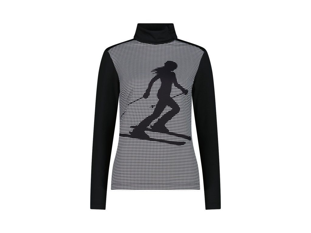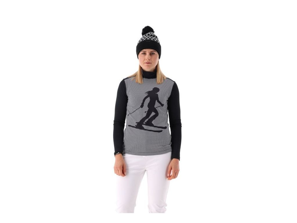 Tato dámská mikina s rolákovým límcem spojuje funkčnost, pohodlí i styl s jemným grafickým odkazem na horskou atmosféru. Je vyrobena z měkkého a prodyšného materiálu, díky čemuž je ideální jako střední vrstva do chladných dní nebo samostatně během přechodného období.