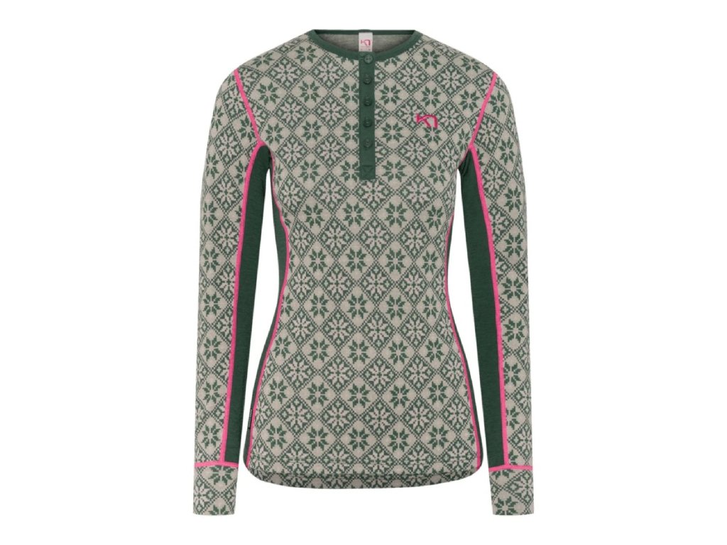Základní vrstva ze 100% Merino vlny s kulatým výstřihem a knoflíky pro teplo a maximální pohodlí po celou zimu a při všech aktivitách. 100% přírodní jemná Merino vlna dokáže díky svým přirozeným vlastnostem hřát i za mokra, absorbovat tělesnou vlhkost uvnitř vlákna a zachovat pocit sucha na pokožce. Pružné panely v podpaží pro volnost pohybu, kulatý výstřih s légou a konflíky pro snadné vrstvení.