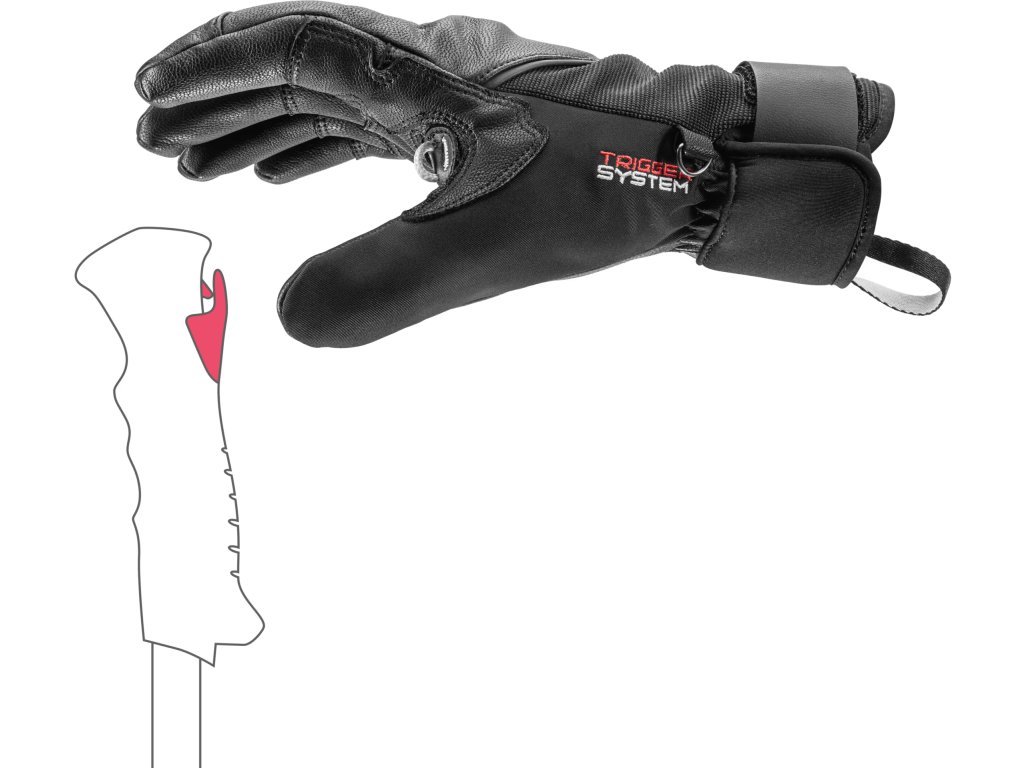 Výhody a výbava: | kompatibilní s Trigger systémem, stažení v oblasti zápěstí suchým zipem, kožená dlaň (100% kozí kůže) |