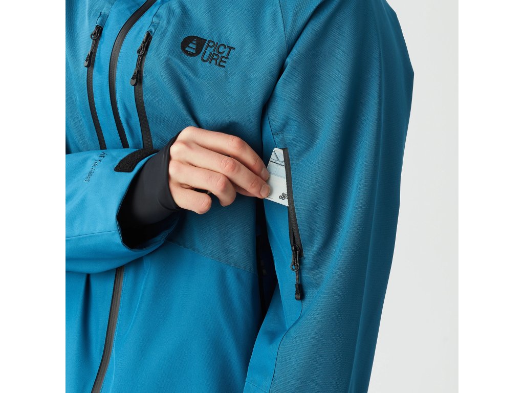 | Funkční prvky: | nastavitelná pevná kapuce, voděodolné zipy, ventilační otvory na zip v oblasti podpaží, kapsa na skipas na zip, 2 boční kapsy na zip, 2 náprsní kapsy na zip, elastické manžety s otvory na palce, regulovatelné rukávy suchými zipy, regulovatelný spodní lem na stažení, vnitřní sněhový pás, vnitřní síťovaná kapsa, vnitřní kapsa na zip |