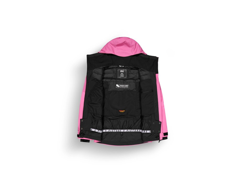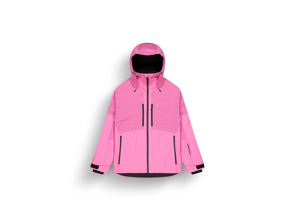 | Funkční prvky: | nastavitelná pevná kapuce, voděodolné zipy, 2 náprsní kapsy na zip, 2 boční kapsy na zip, kapsa na skipas na zip, elastické manžety s otvory na palce, regulovatelné rukávy suchými zipy, regulovatelný spodní lem na stažení, vnitřní sněhový pás, vnitřní síťovaná kapsa, vnitřní kapsa na zip |