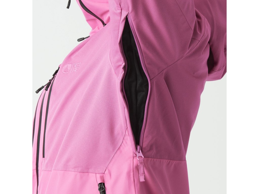Tato dámská lyžařská bunda zaujme texturovanou tkaninou a sytými barvami, díky kterým je nadčasovým a stylovým kouskem na svah. Je ekologicky vyrobena z kruhového polyesteru získaného z textilního odpadu a vybavena membránou 20K/20K, která poskytuje špičkovou voděodolnost a prodyšnost. Ochranu doplňuje vodoodpudivá úprava bez PFC a voděodolné zipy.