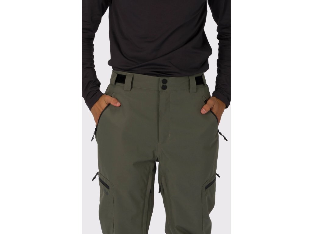 | Funkční prvky: | regulovatelný pas suchými zipy, poutka na opasek, 2 boční kapsy na zip, 2 kapsy na stehnech na zip, voděodolné zipy, ventilační otvory na zip v oblasti stehen, rozšiřitelný spodní díl nohavic na zip, vnitřní sněhové manžety |