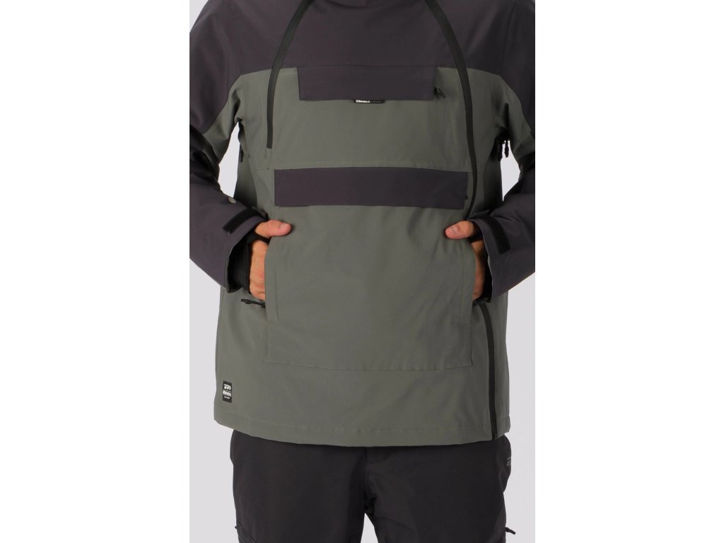 | Funkční prvky: | plně podlepené švy, voděodolné zipy, pevná kapuce, 1/2 zip postranní, celopropínací boční zip, náprsní kapsa na zip, klokaní kapsa s bočními zipy a vrchním zipem, ventilační otvory na zip v oblasti podpaží, elastické manžety s otvory na palce, regulovatelné rukávy suchými zipy, regulovatelný spodní lem na stažení, vnitřní sněhový pás, vnitřní kapsa na zip |