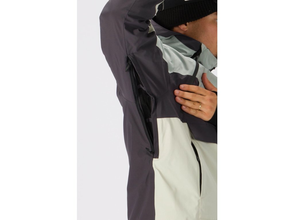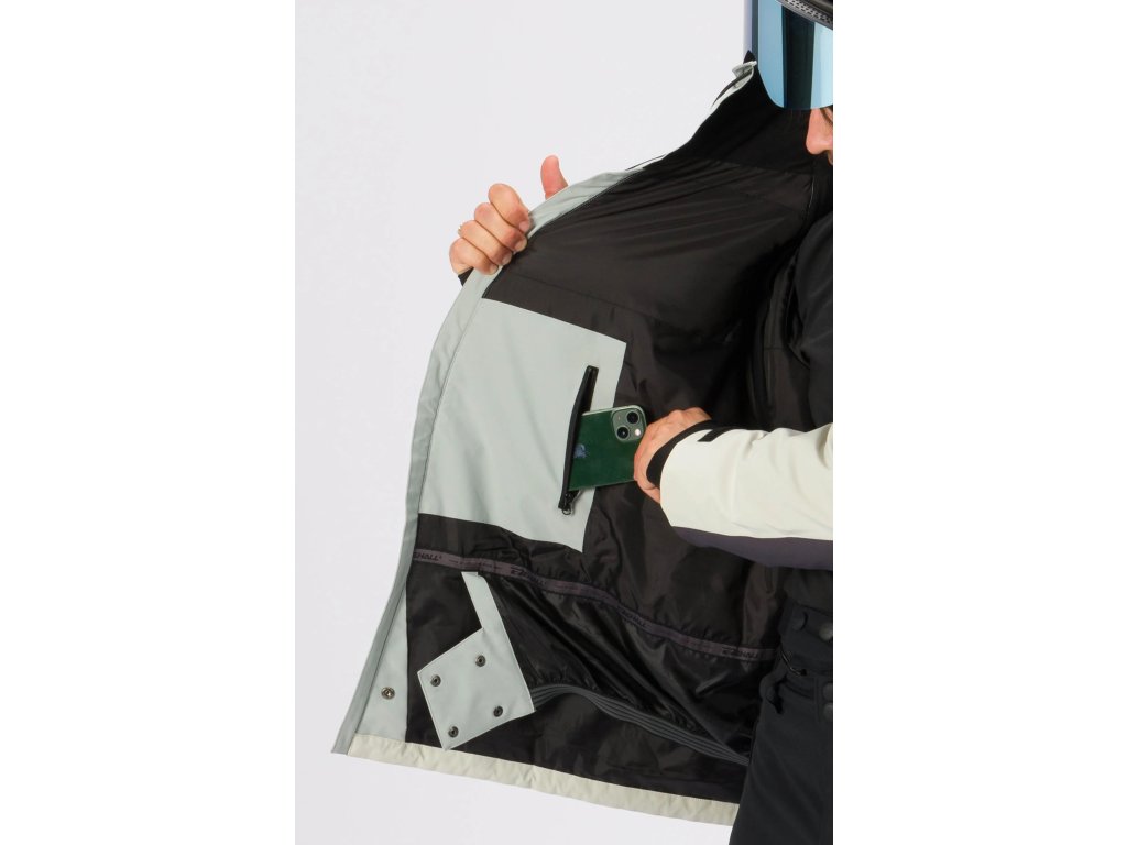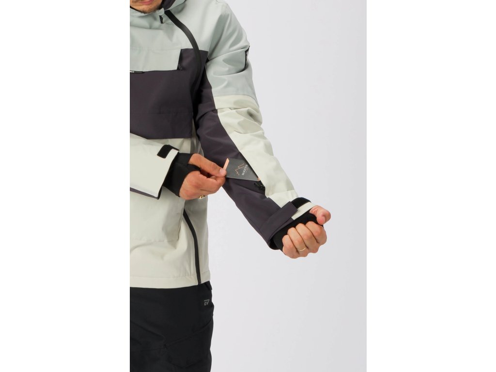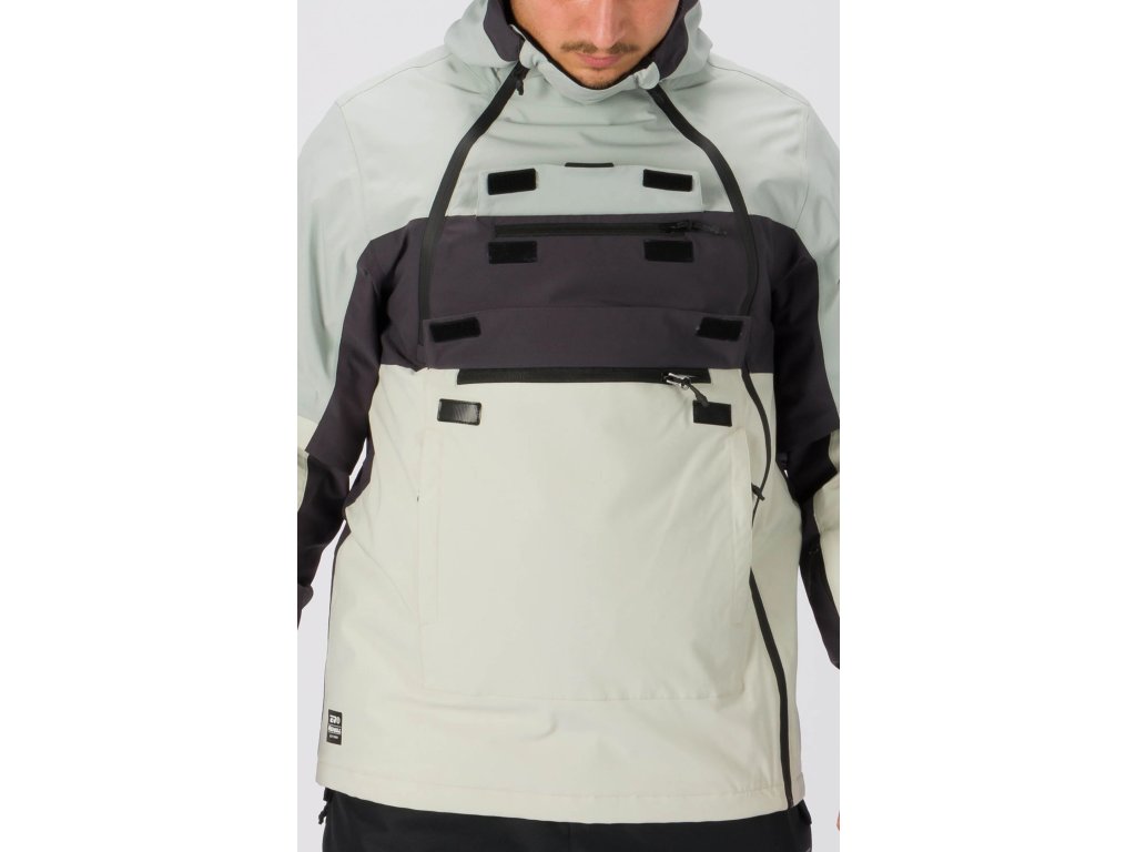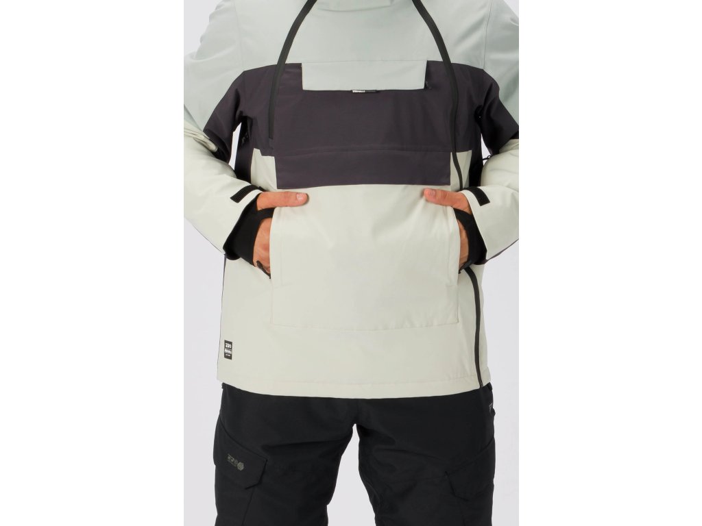 | Funkční prvky: | plně podlepené švy, voděodolné zipy, pevná kapuce, 1/2 zip postranní, celopropínací boční zip, náprsní kapsa na zip, klokaní kapsa s bočními zipy a vrchním zipem, ventilační otvory na zip v oblasti podpaží, elastické manžety s otvory na palce, regulovatelné rukávy suchými zipy, regulovatelný spodní lem na stažení, vnitřní sněhový pás, vnitřní kapsa na zip |