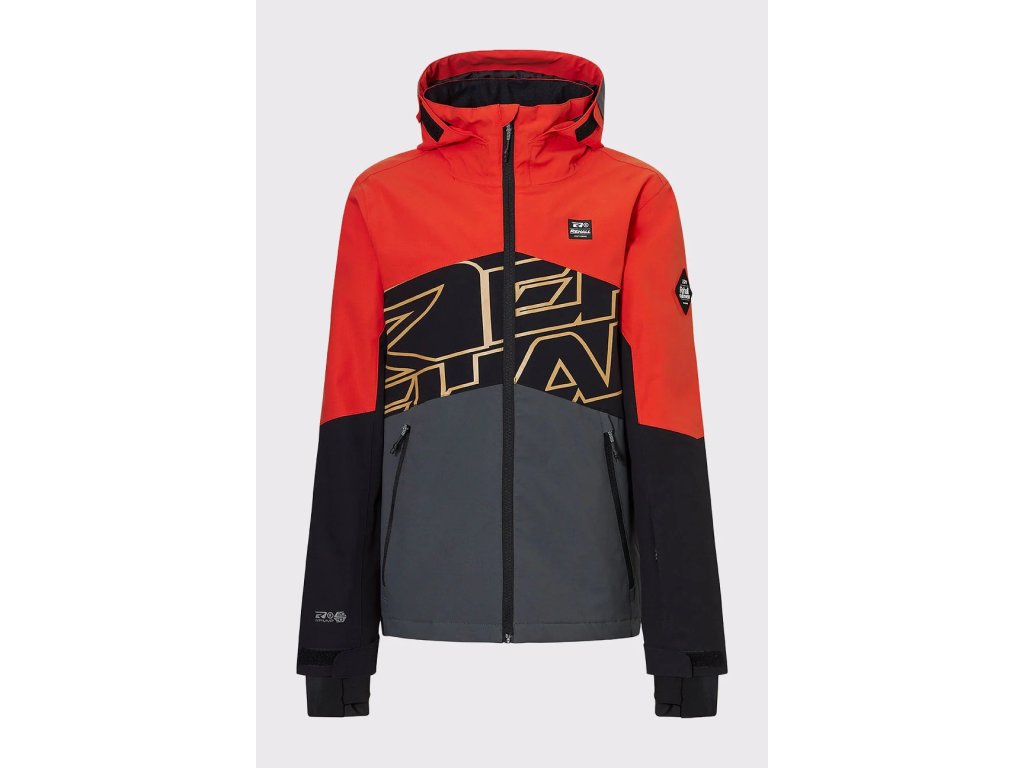 | Funkční prvky: | plně podlepené švy, voděodolné zipy, pevná kapuce, 2 boční kapsy na zip, kapsa na skipas na zip, elastické manžety s otvory na palce, regulovatelné rukávy suchými zipy, regulovatelný spodní lem na stažení, vnitřní sněhový pás, vnitřní kapsa na zip |