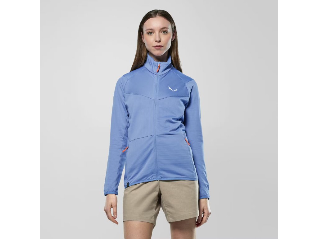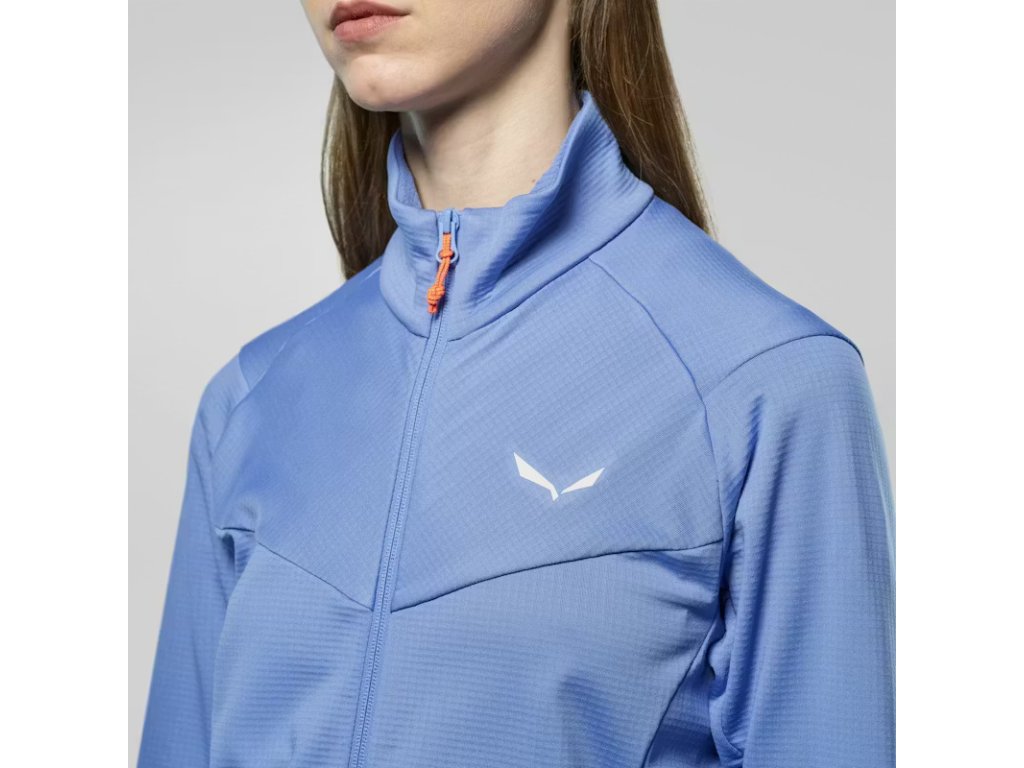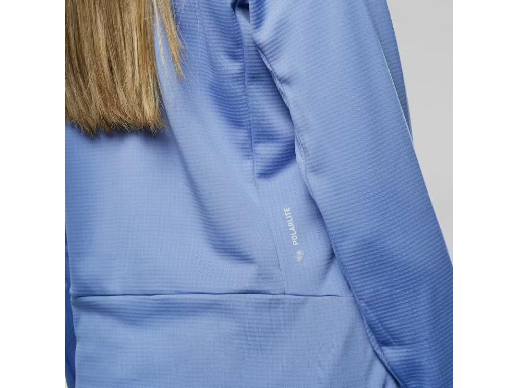 Dámská mikina Puez Cammino je lehká a pohodlná izolační mezivrstva z kartáčovaného fleecu Polarlite o gramáži 215 g. Díky klasickému střihu a nízkému objemu se skvěle hodí jako hřejivá vrstva pod shellovou bundu i jako samostatný kousek při mírnějším počasí.
